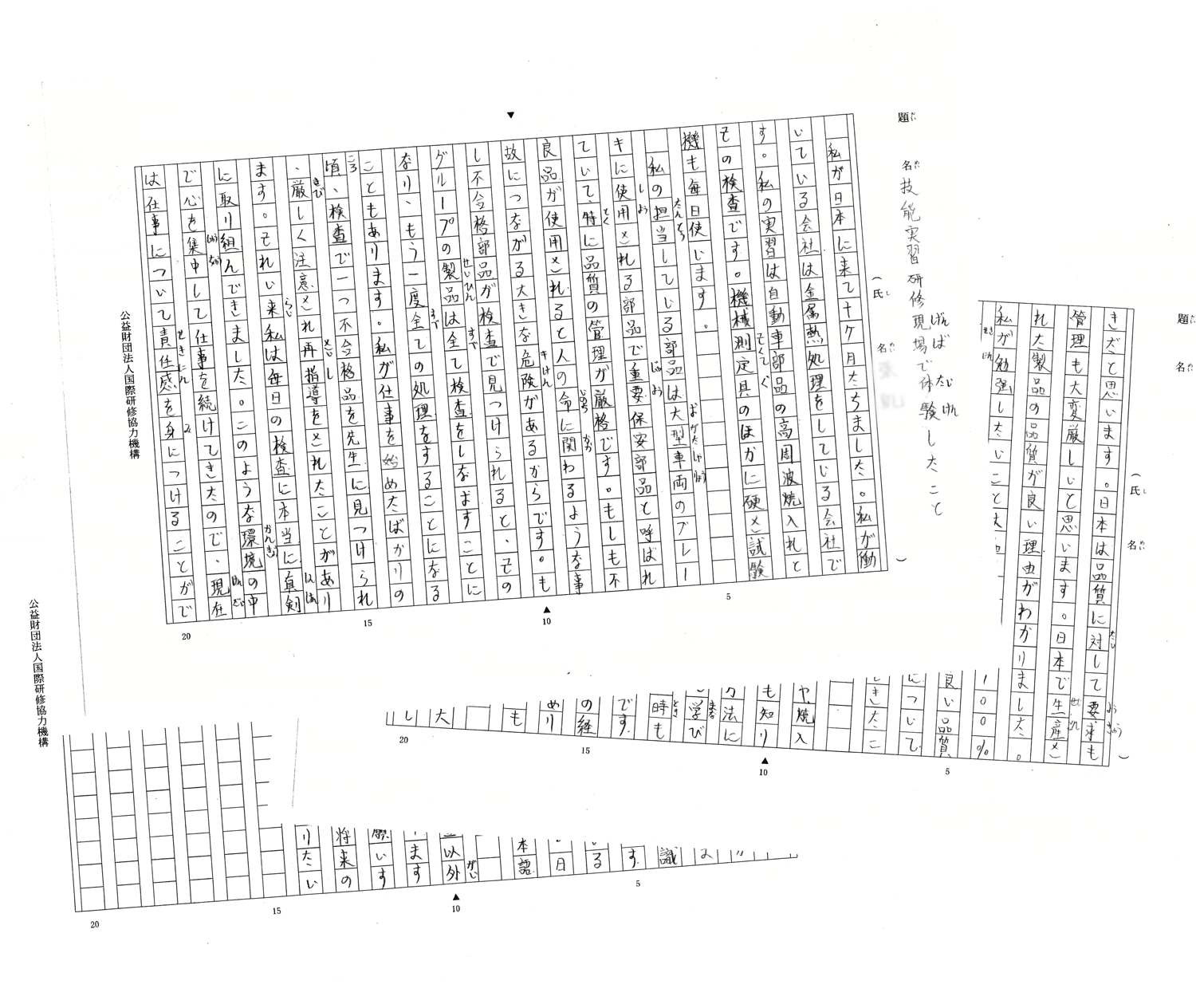 日本で学んだ仕事に向かう姿勢、合格不合格の判断基準など体験したことを作文しています。