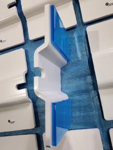 耐震マット(青い箇所)をすべて同じ位置に貼るために治具も製作いたしました。